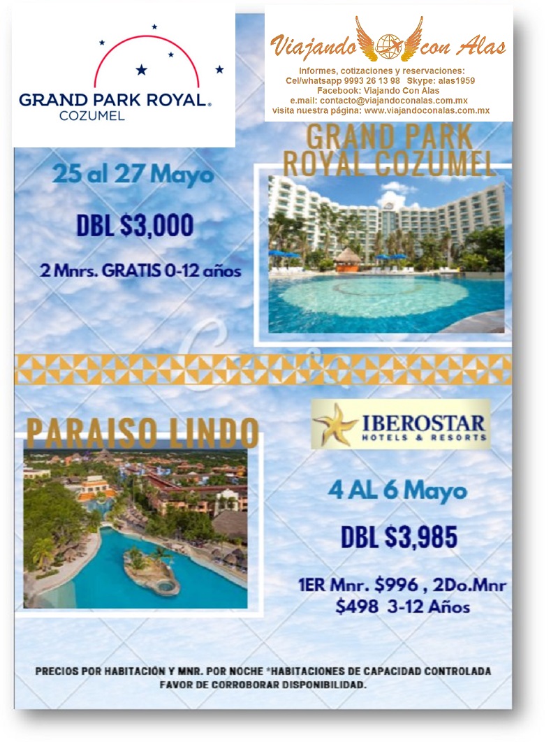 GRAND PARK ROYAL COZUMEL CON 2 MENORES GRATIS DE 0 A 12 AÑOS!
