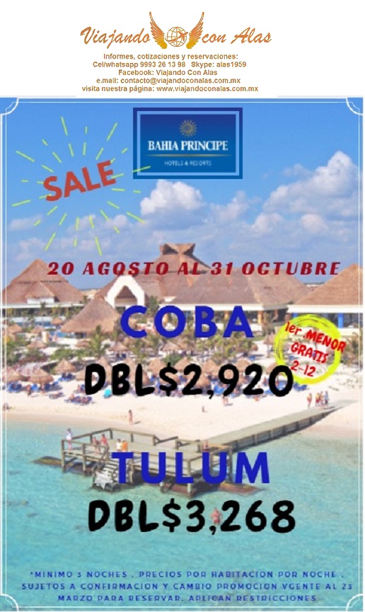 Bahía Príncipe Cobá con "1 MENOR GRATIS de 2 a 12 años"