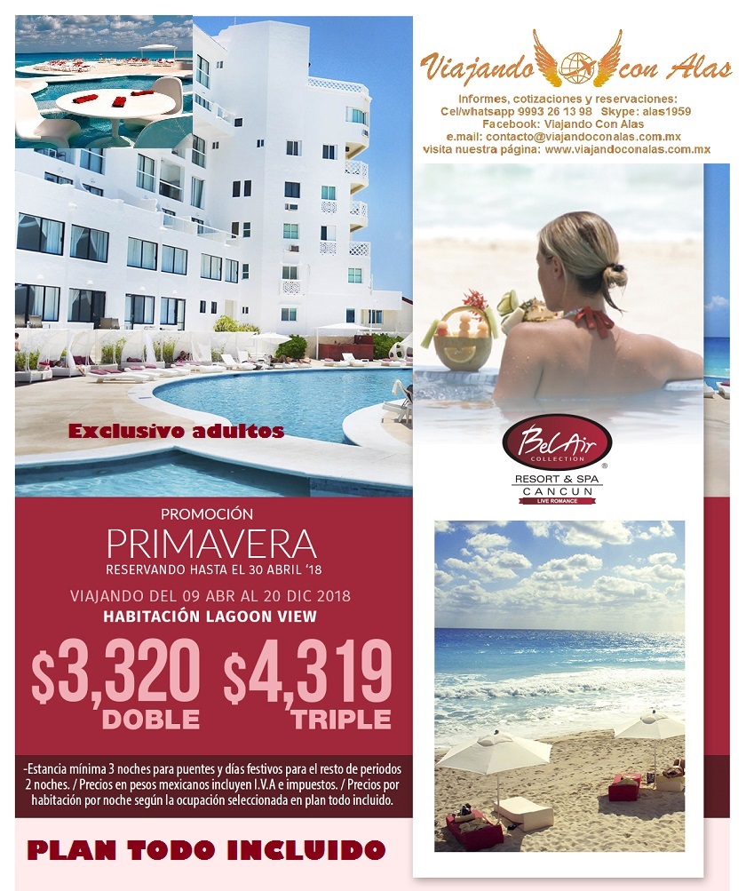 - Periodo para viajar del 09 de Abril al 20 de Diciembre del 2018