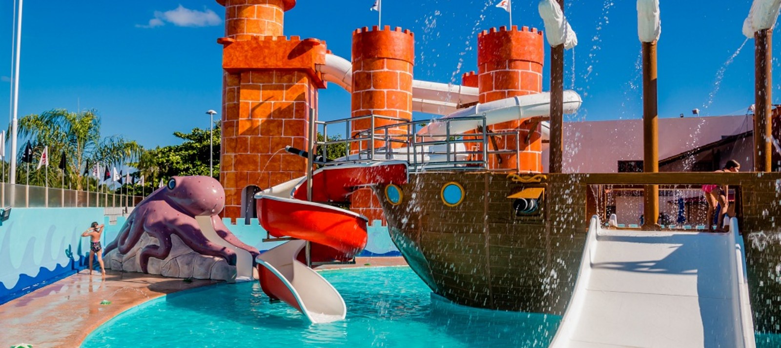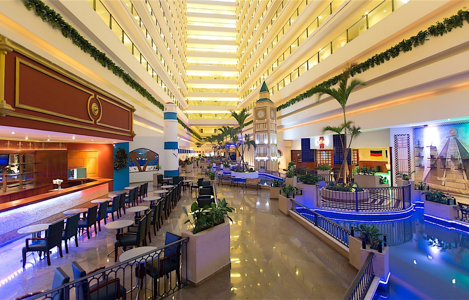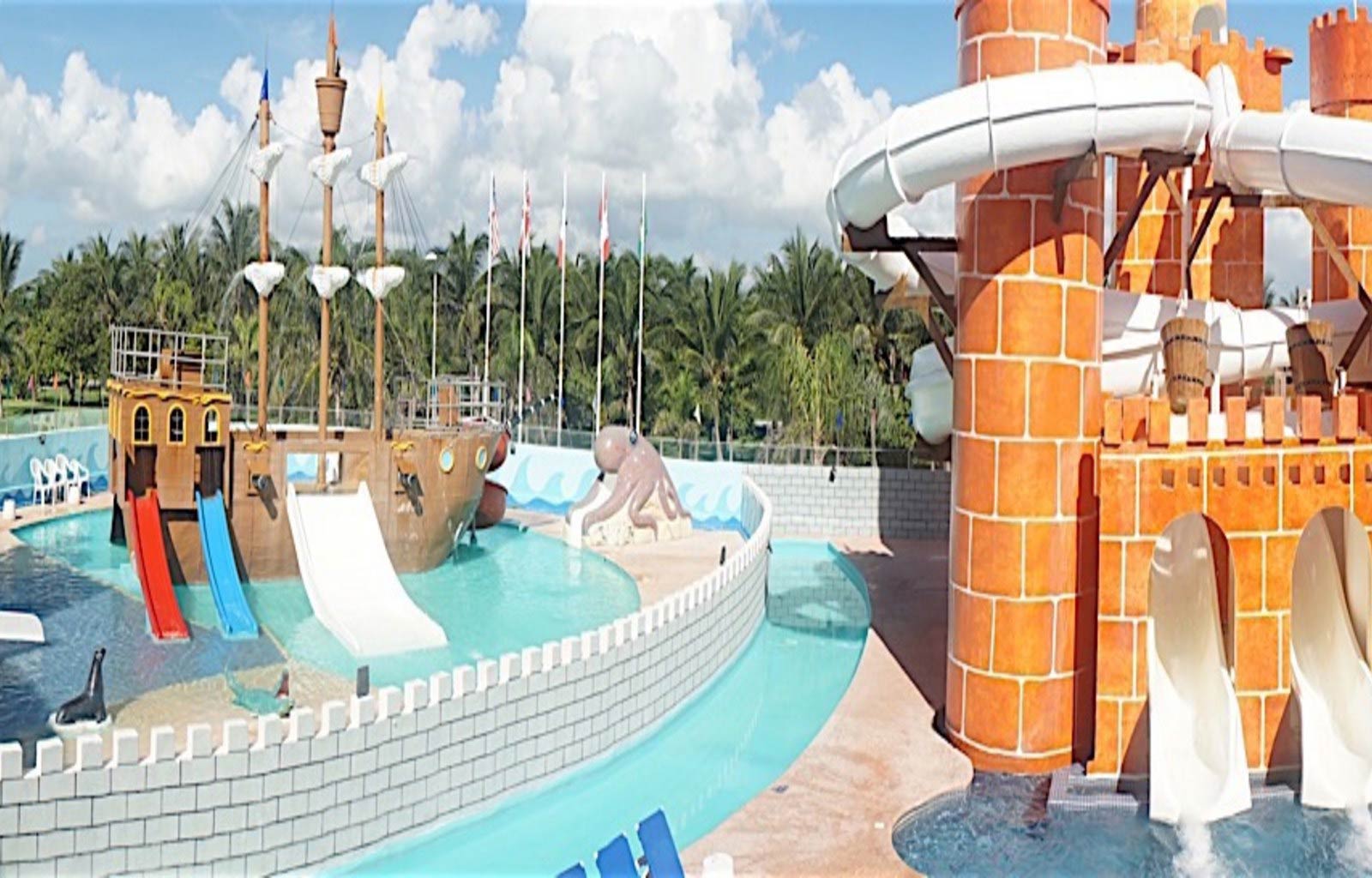 El hotel tiene varios restaurantes y bares, acceso a la playa y 3 piscinas exteriores, así como un parque acuático, un spa con saunas y baños de vapor, un gimnasio, instalaciones de conferencias y un club infantil.
