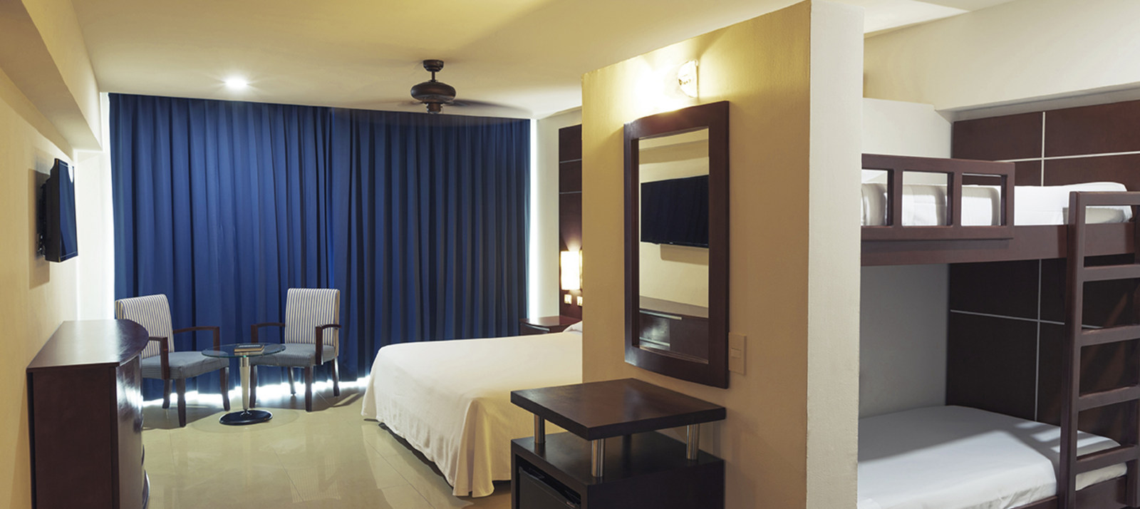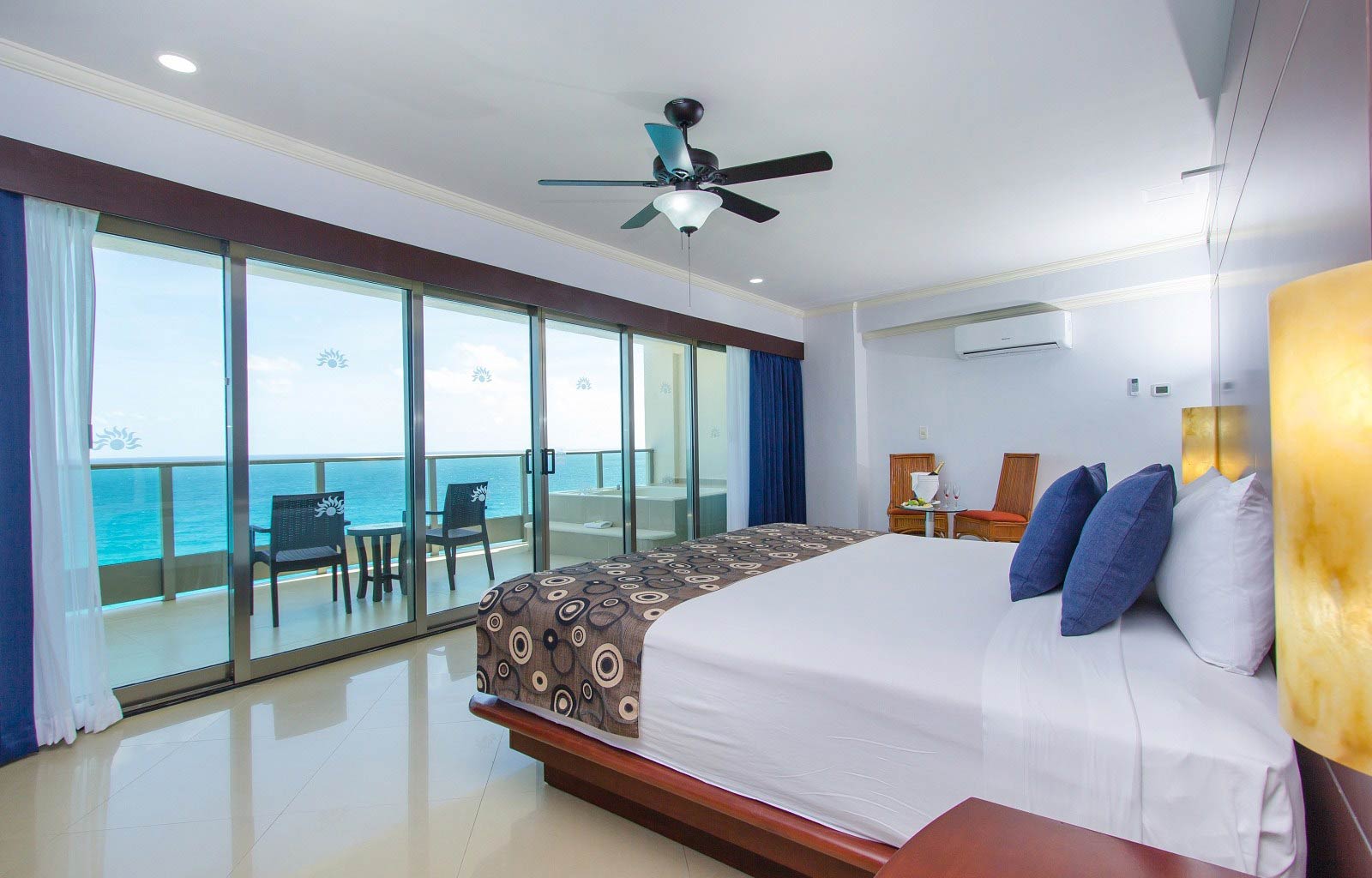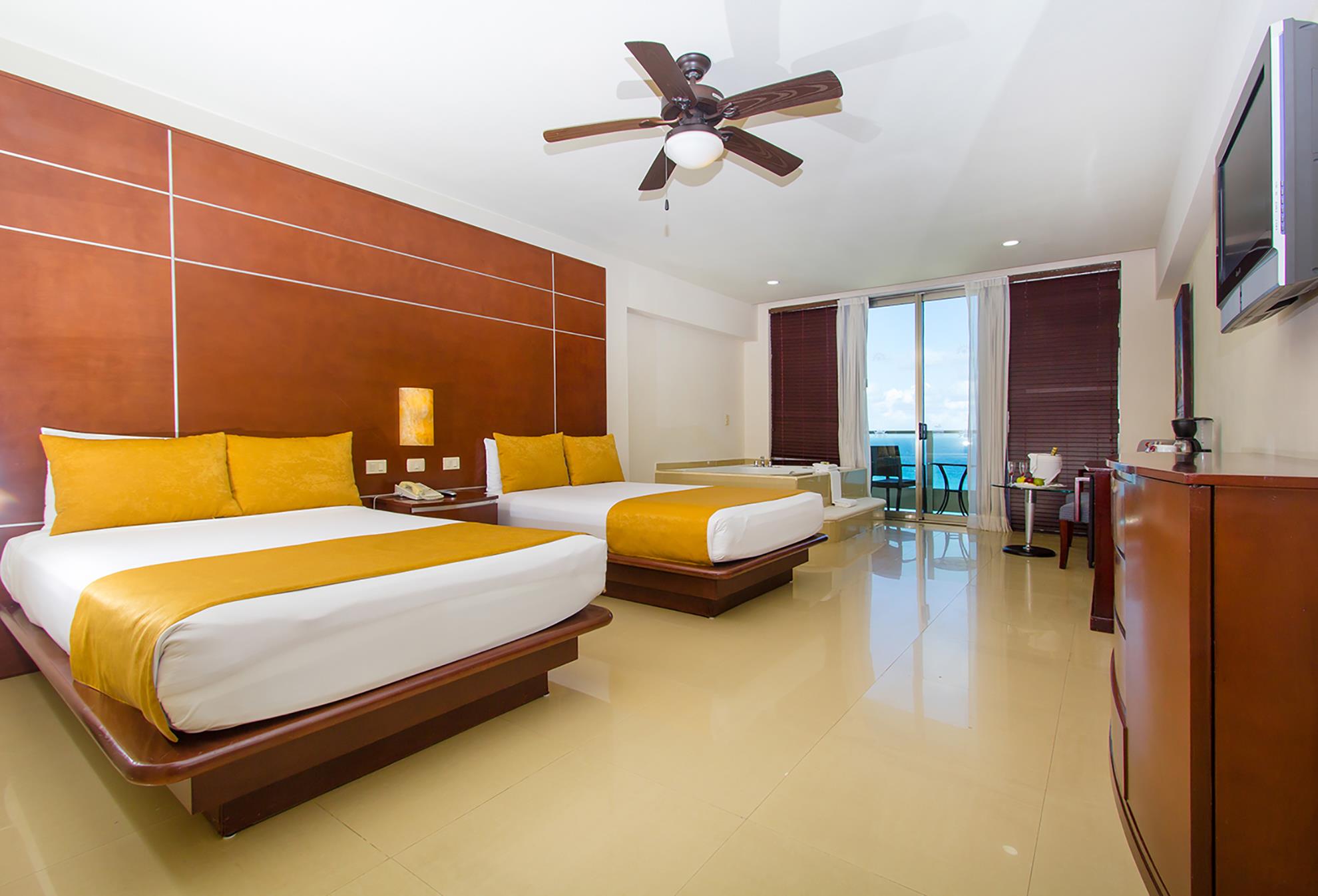 Las habitaciones, modernas y refinadas, tienen una decoración tropical, ventiladores en el techo, televisiones de pantalla plana y balcones con vistas al mar.