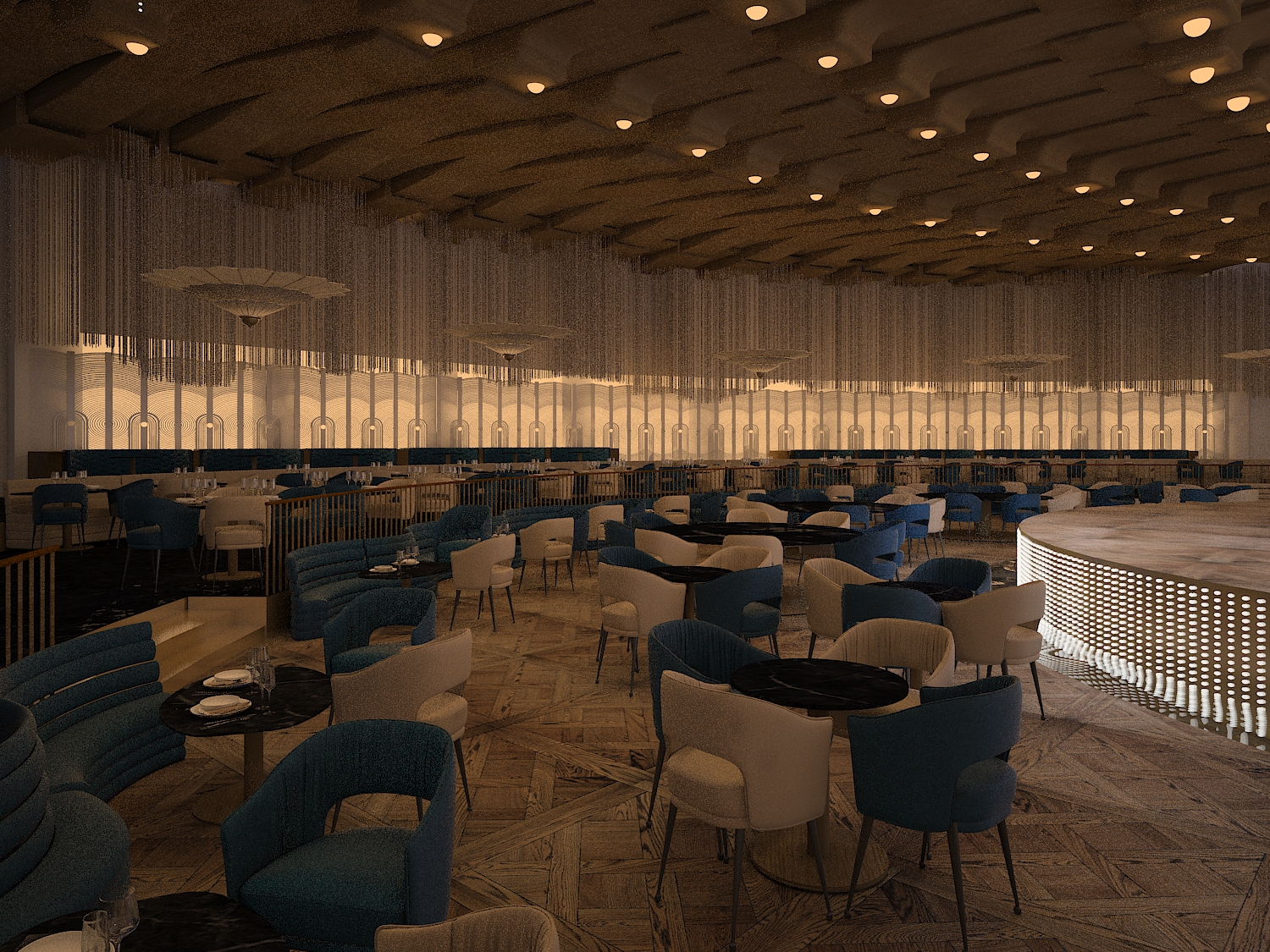 Cuenta con 10 restaurantes a la carta, 5 restaurantes buffet y 6 bares.