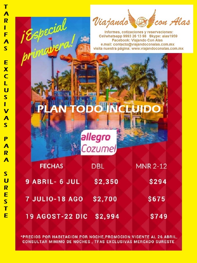 ALLEGRO COZUMEL 4* EXCLUSIVO PARA MERCADO SURESTE! 10 April 2018 on Cozumel, Promociones, Puentes Vacacionales ¡OFERTA ESPECIAL DE PRIMAVERA VIGENTE HASTA EL 26 DE ABRIL'18! ¡Tú elijes las fechas!