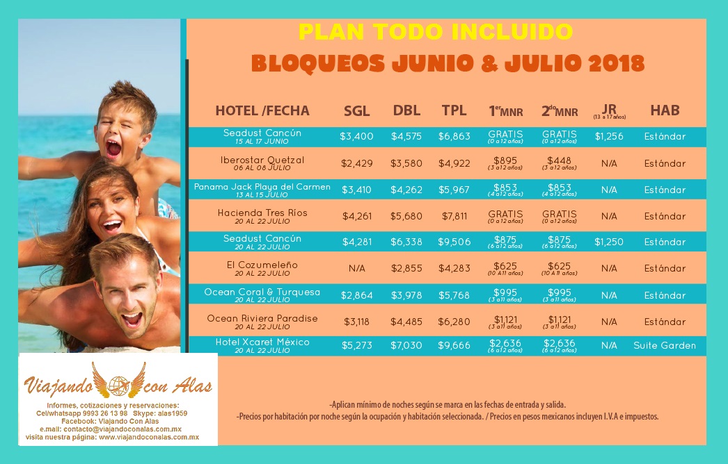 BLOQUEOS JUNIO Y JULIO'18 10 April 2018 on Cancún, Cozumel, Playa Del Carmen, Riviera Maya, Promociones, Bloqueos PARA FESTEJAR A PAPA CON UNOS DIAS DE DIVERSION! Variedad de hoteles y fechas para que elijas el de tu prefencia!!! Reserva hoy mismo y paga poco a poco