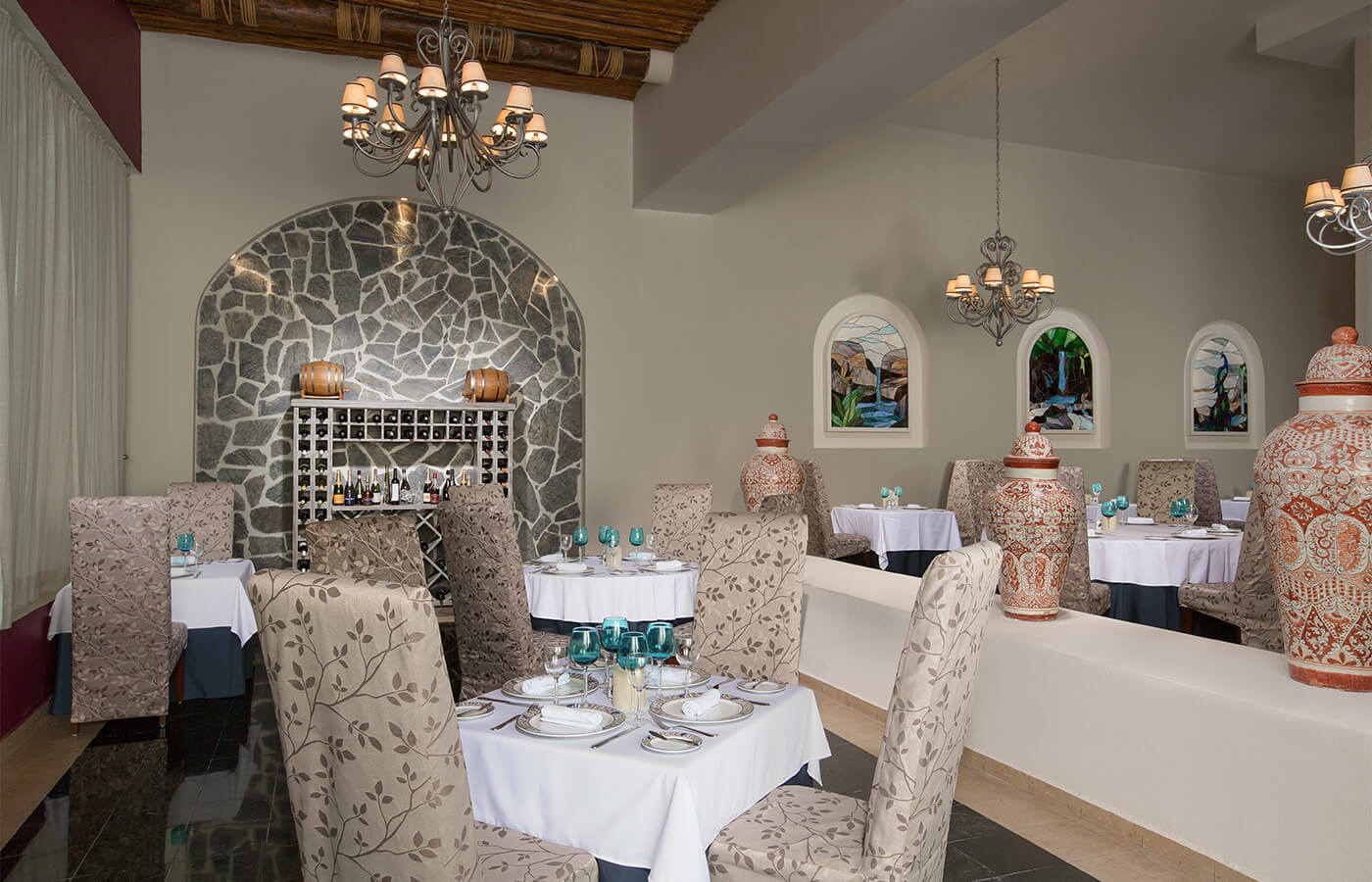 El hotel tiene 10 restaurantes y 10 bares, la mayoría de estilo mexicano, además de 2 piscinas al aire libre, un club nocturno y entretenimiento vespertino. También hay programas para niños, un gimnasio, un spa.