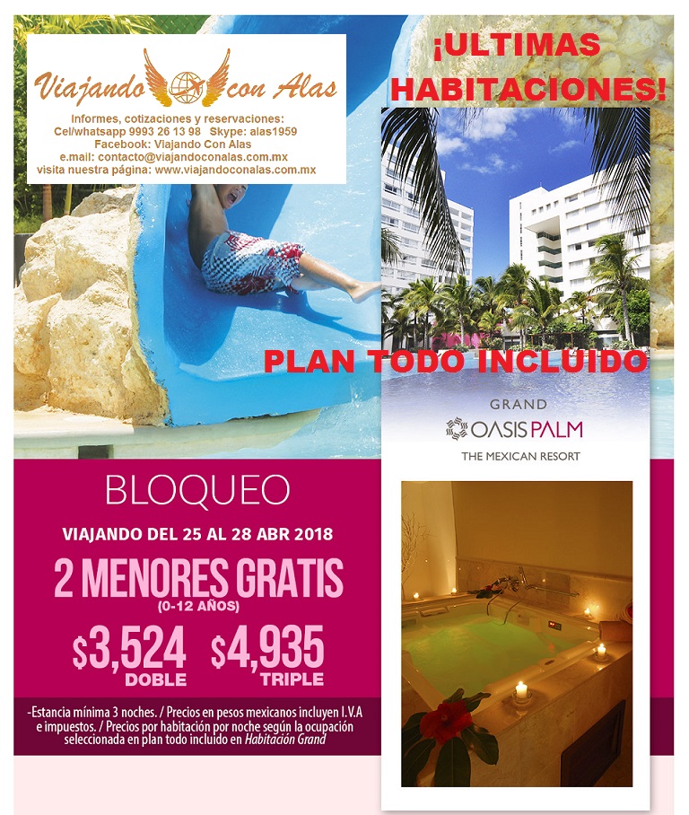 - Periodo para viajar del 25 al 28 de Abril del 2018.