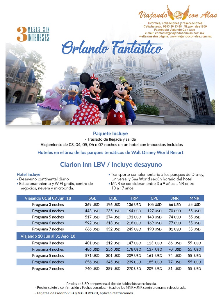- Precio en Dólares Americanos, por persona y tipo de habitación seleccionada.