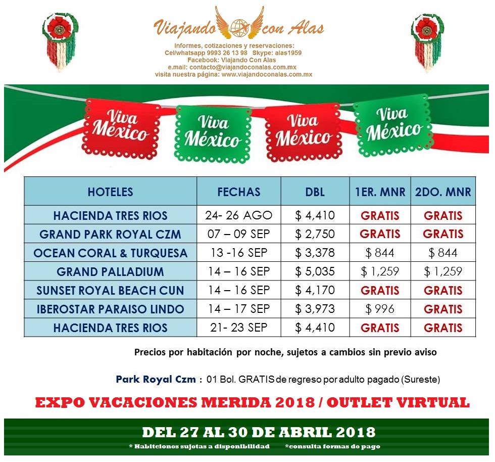 GRAN VARIEDAD DE HOTELES EN COZUMEL, CANCUN, RIVIERA MAYA, DE 5* CON PLAN TODO INCLUIDO, MENORES GRATIS, TODOS CON SUPER TARIFAS DE OUTLET DEL 27 AL 30 DE ABRIL 2018
