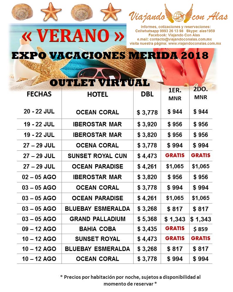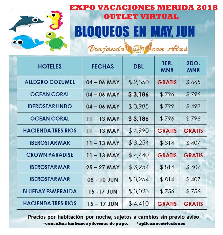 GRAN VARIEDAD DE HOTELES EN COZUMEL, CANCUN, RIVIERA MAYA, DE 5* CON PLAN TODO INCLUIDO, MENORES GRATIS, TODOS CON SUPER TARIFAS DE OUTLET DEL 27 AL 30 DE ABRIL 2018
