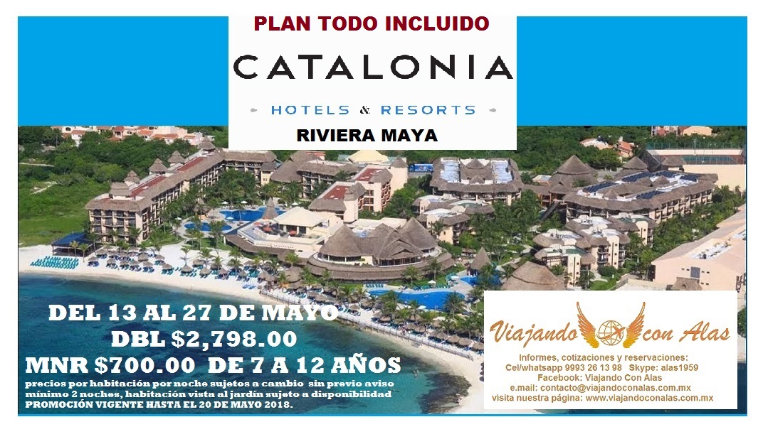 CATALONIA RIVIERA MAYA RESORT & SPA 11 May 2018 Para viajar del 13 al 27 de mayo 2018 Para reservar hasta el 20 de mayo 2018