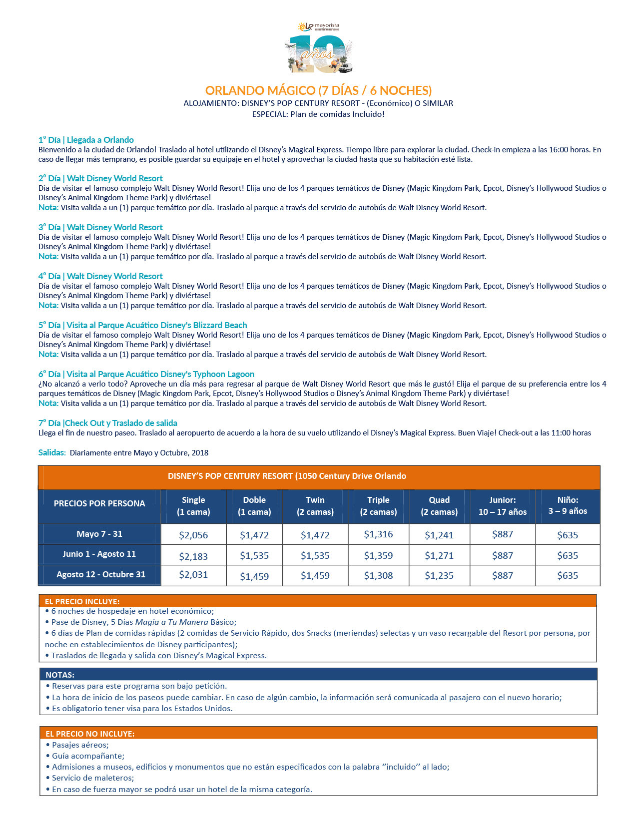 ORLANDO MAGICO SALIDAS DIARIAS