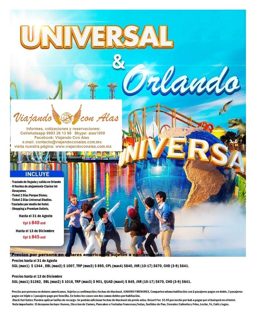 ¡DISFRUTA DE 7 DIAS Y 6 NOCHES VISITANDO PARQUES DE DISNEY Y UNIVERSAL STUDIOS