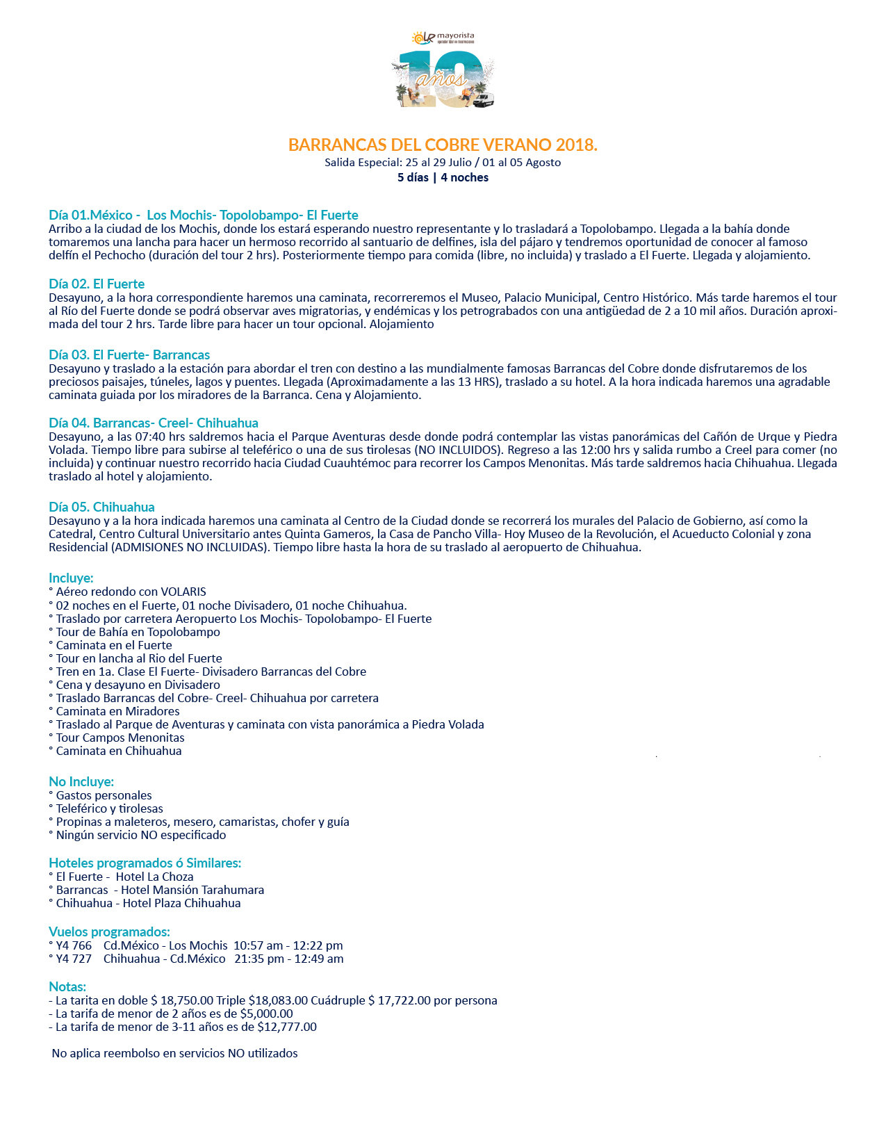 - Periodo para viajar del 01 de Julio al 19 de Agosto del 2018.