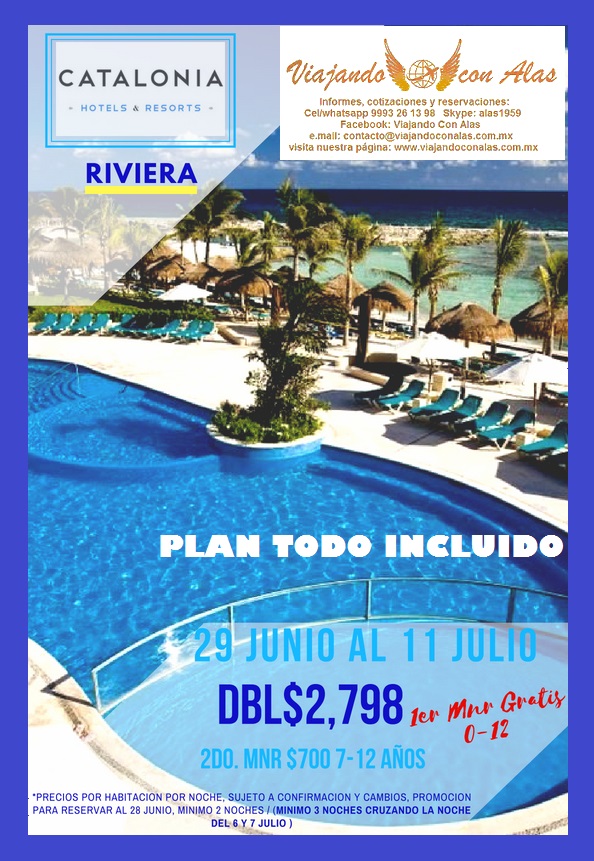 CATALONIA RIVIERA MAYA "UN MENOR GRATIS" 25 June 2018 on Riviera Maya, Último Minuto, Promociones OFERTA DE ULTIMO MINUTO CON SÚPER TARIFA PARA RESERVAR HASTA EL 28 DE JUNIO'18 PLAN TODO INCLUIDO Para viajar del 29 de junio al 11 de julio'18