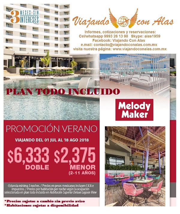 Melody Maker Cancún es un resort lifestyle ubicado en la espectacular playa de la Zona Hotelera de Cancún, muy cerca de los principales centros comerciales, restaurantes de primer nivel, lugares de moda y discotecas de Cancún.