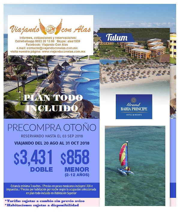 - Periodo para viajar del 20 de Agosto al 31 de Octubre del 2018.