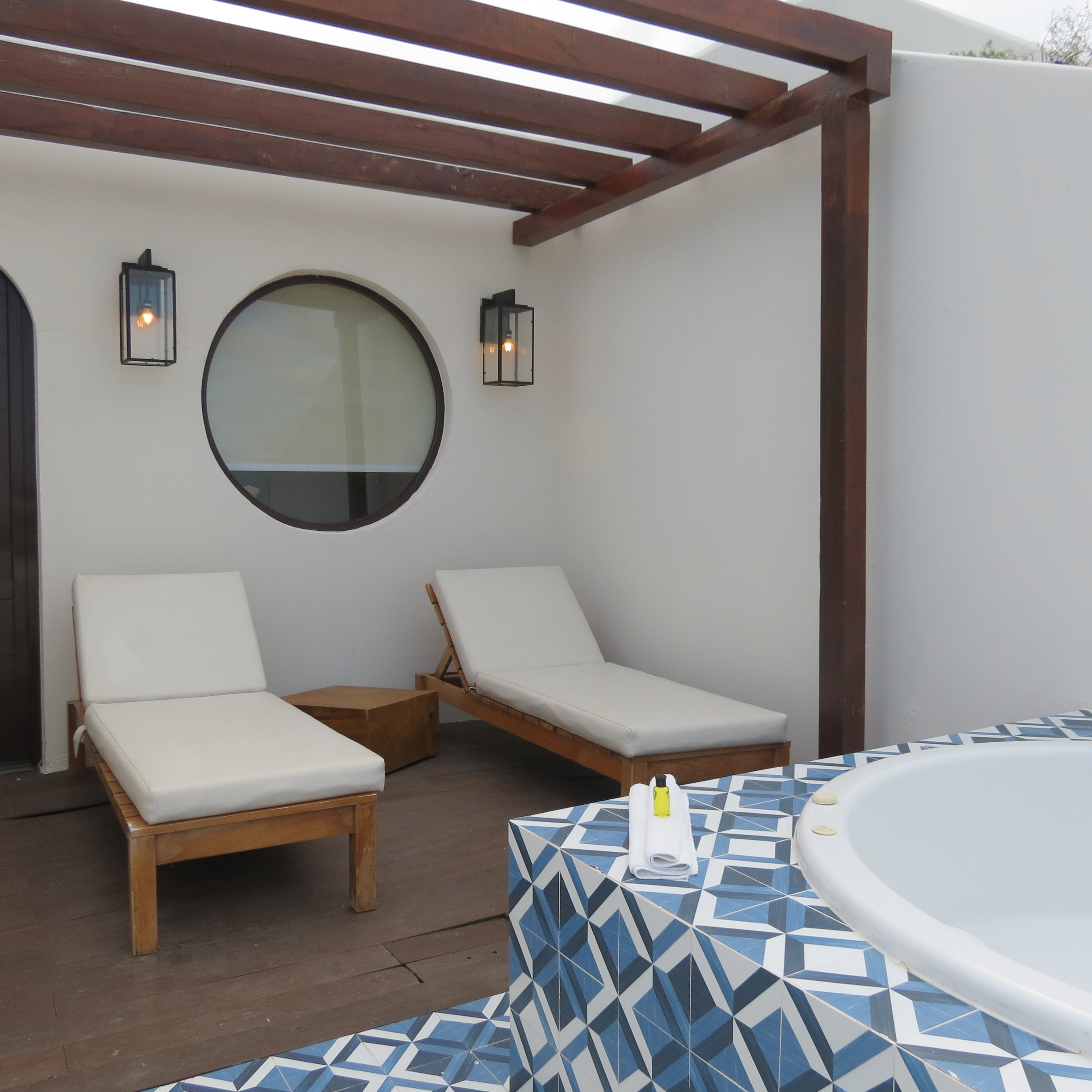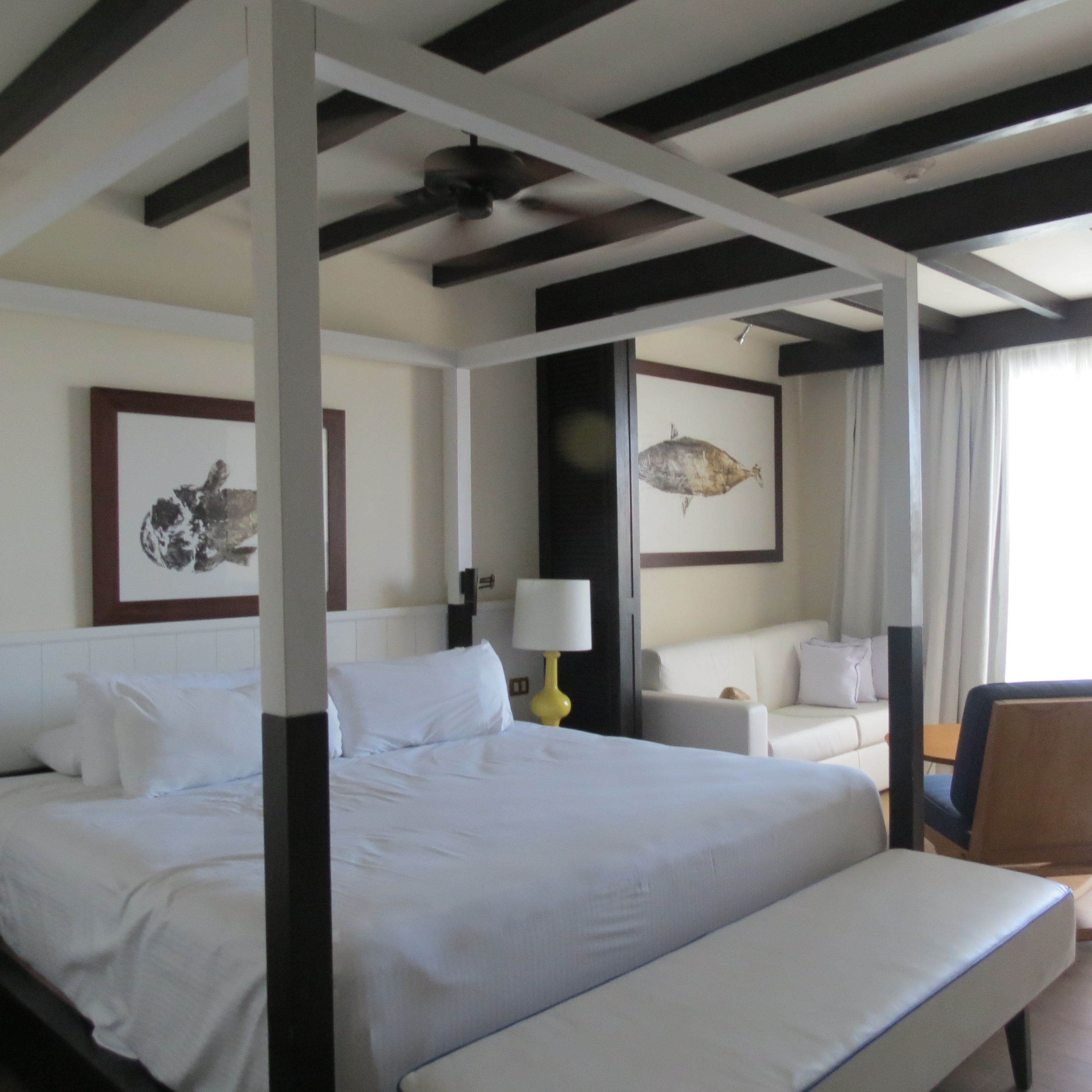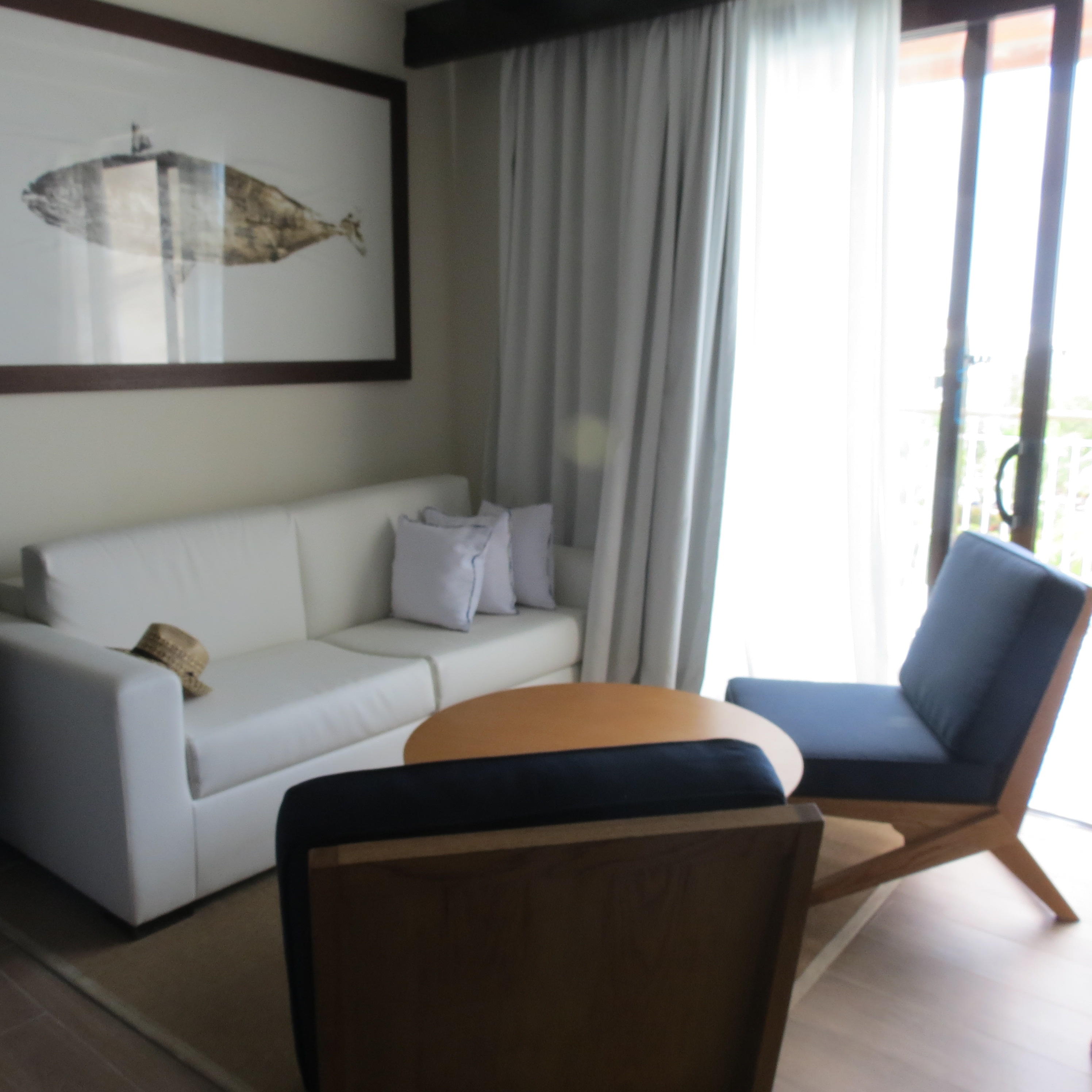 Las 974 suites son luminosas y tienen vigas a la vista, ventilador de techo, cama con dosel y balcón o terraza. Todas están equipadas con Wi-Fi, minibar, televisor inteligente, cafetera y área de visitas con sofá cama. Las suites mejoradas incluyen vista al mar, acceso directo a las piscinas o hidromasaje en la terraza. Se ofrece servicio en la habitación hasta las 23 horas, todos los días.