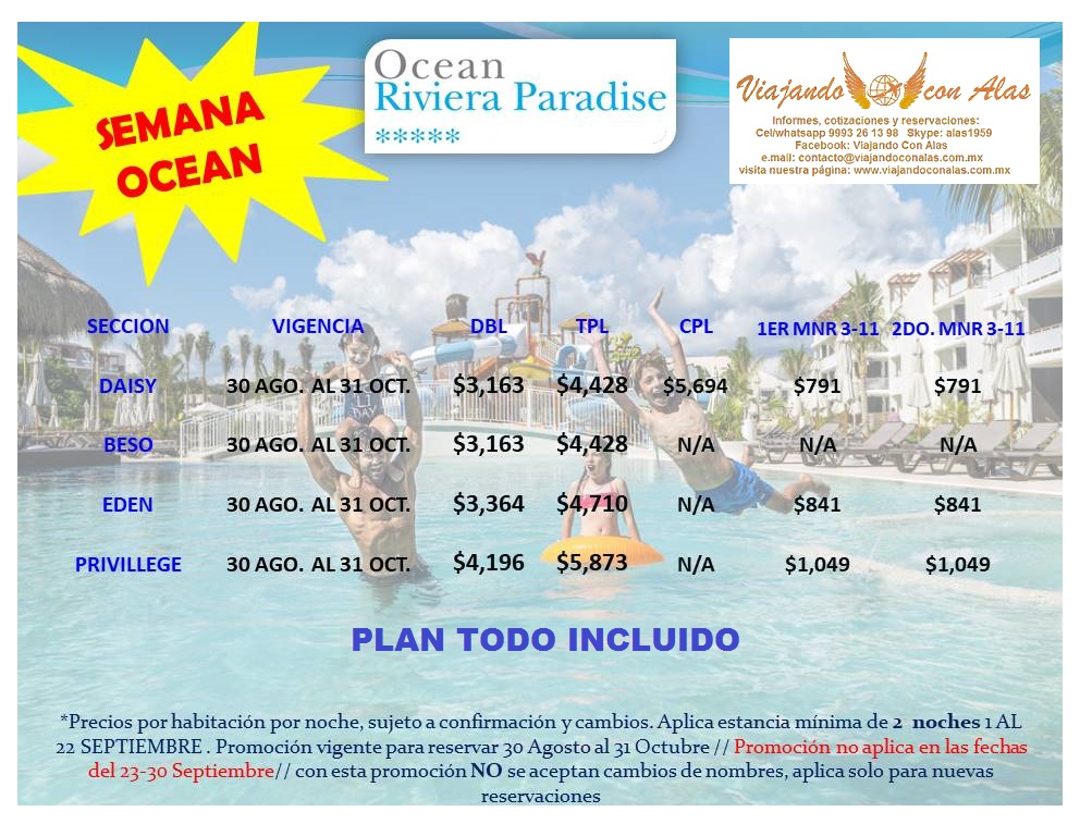 SUPER PROMOCION PARA VIAJAR DEL 30 AGO AL 31 OCT O DEL 1° NOV AL 23 DIC'18