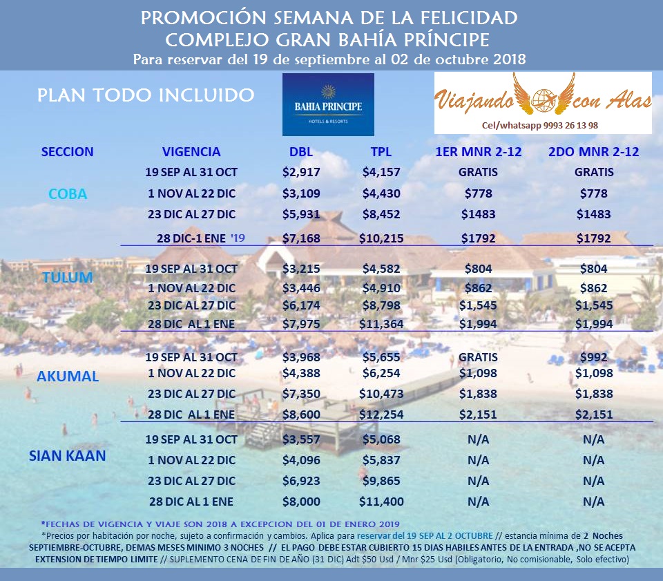 SEMANA DE LA FELICIDAD DEL COMPLEJO GRAND BAHIA PRINCIPE 19 September 2018 on Riviera Maya, Promociones, Solo Adultos, Tulum, Puentes Vacacionales Para reservar del 19 sep al 02 oct'18 Consulta tarifas 2019