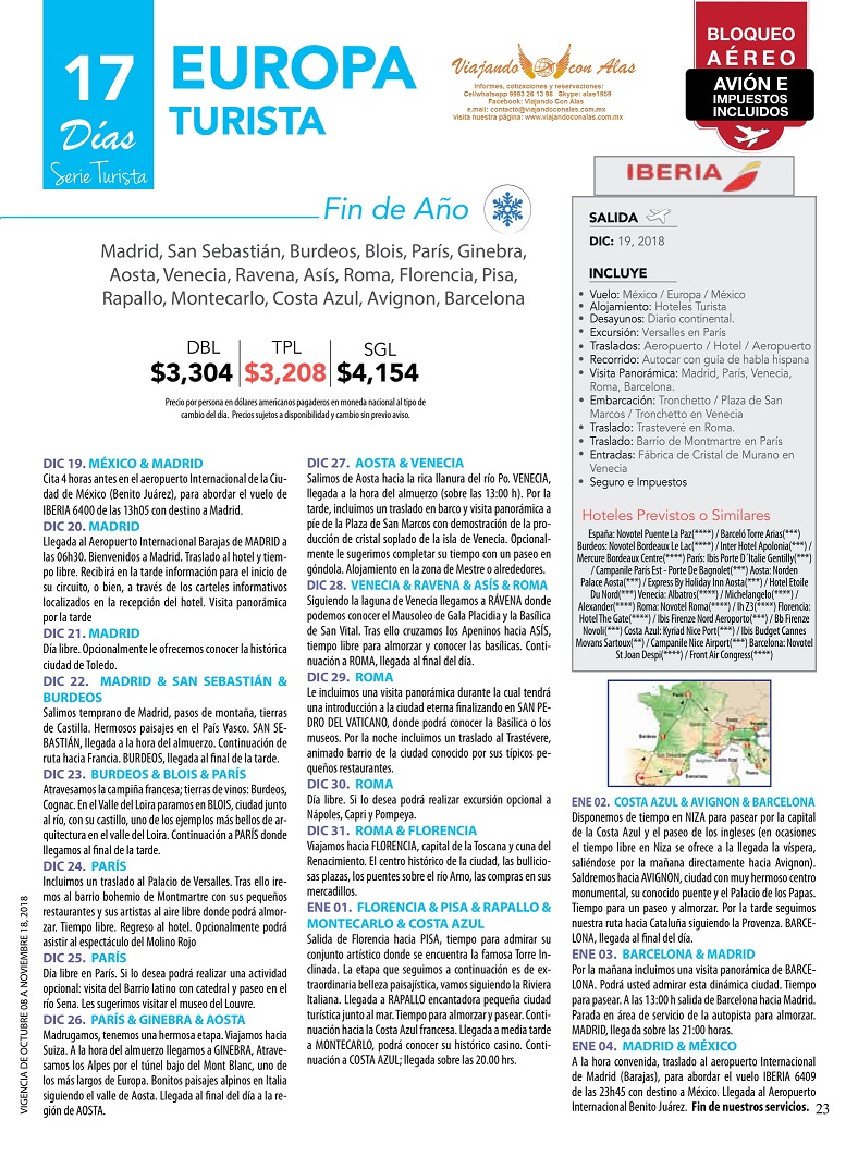 PAQUETE EUROPA TURISTA DESDE CIUDAD DE MEXICO 19 October 2018 on Promociones, Bloqueos, Europa, Puentes Vacacionales Con la garantía de EUROMUNDO Salida el 19 de diciembre'18
