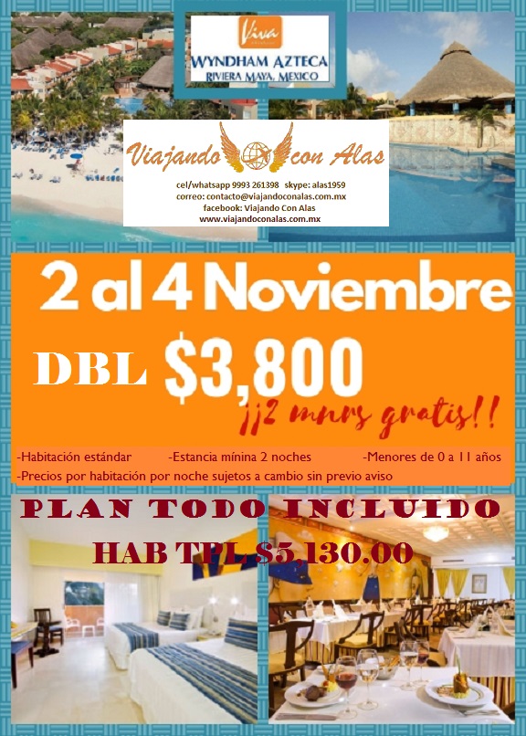 VIVA WYNDHAM AZTECA, Riviera Maya 19 October 2018 on Riviera Maya, Playa Del Carmen, Promociones, Último Minuto, Puentes Vacacionales 2 MENORES GRATIS Para viajar del 2 al 4 de Nov'18
