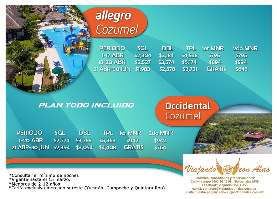 "COZUMEL EN PROMOCIÓN" 13 February 2019 on Cozumel, Promociones, Puentes Vacacionales Aplica para Yucatán, Campeche y Q. Roo. Allegro Cozumel Occidental Cozumel
